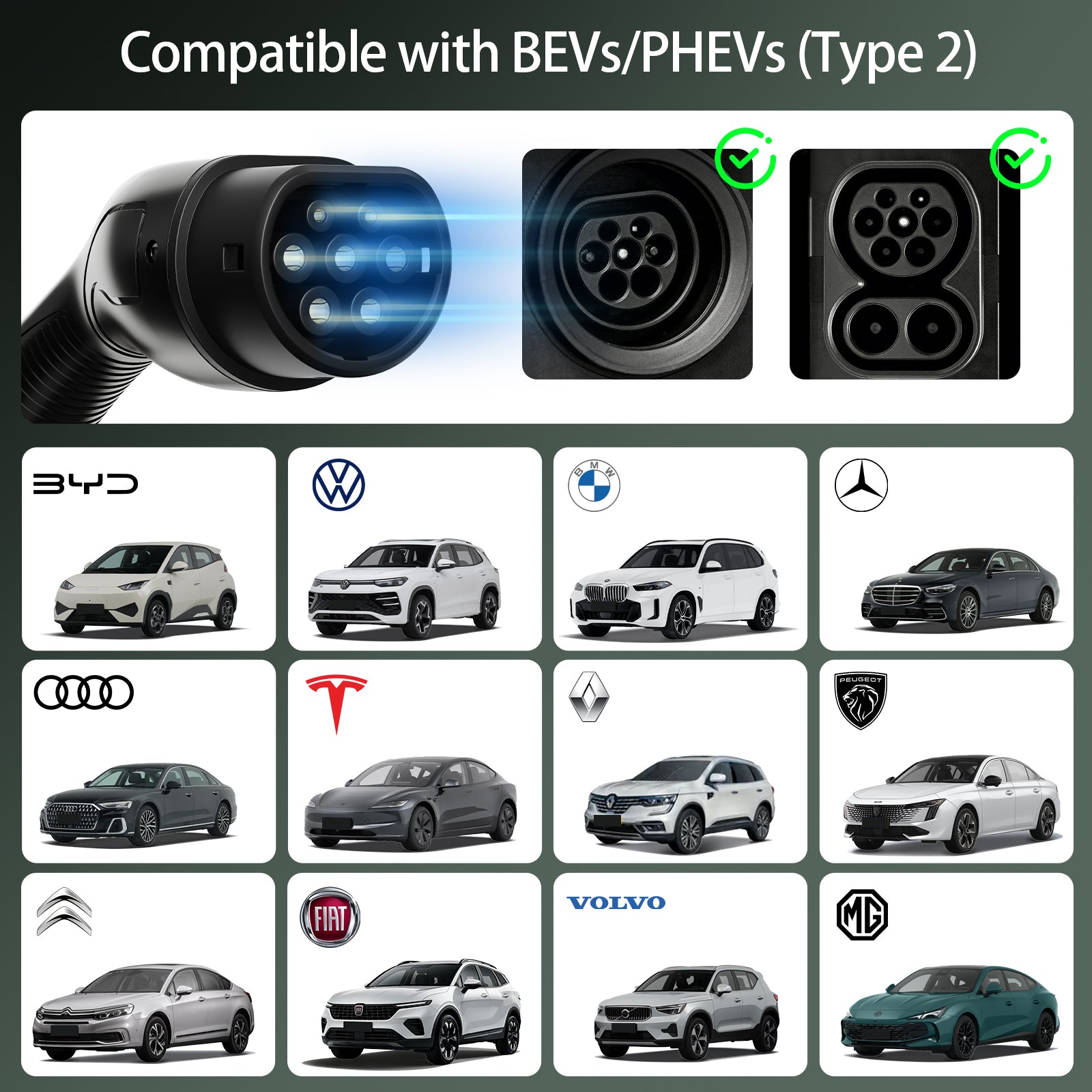 R: È compatibile con qualsiasi marca di auto, purché la porta di ricarica (Tipo 1 o Tipo 2) sia compatibile. Per garantire prestazioni ottimali, scegli un caricabatterie che corrisponda al meglio alla potenza e alla tensione massime supportate dalla tua auto.